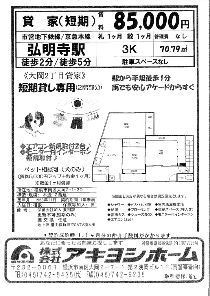 【短期専用貸家(大岡2丁目)】についてのお問い合わせは、こちらからどうぞ。